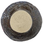 Glazed ceramic plate in colorful argyle pattern. Trash glass found on a northern New Mexico beach fused into the center. 10.5" diameter, 2" deep. Made in 2025. Functional or decorative.